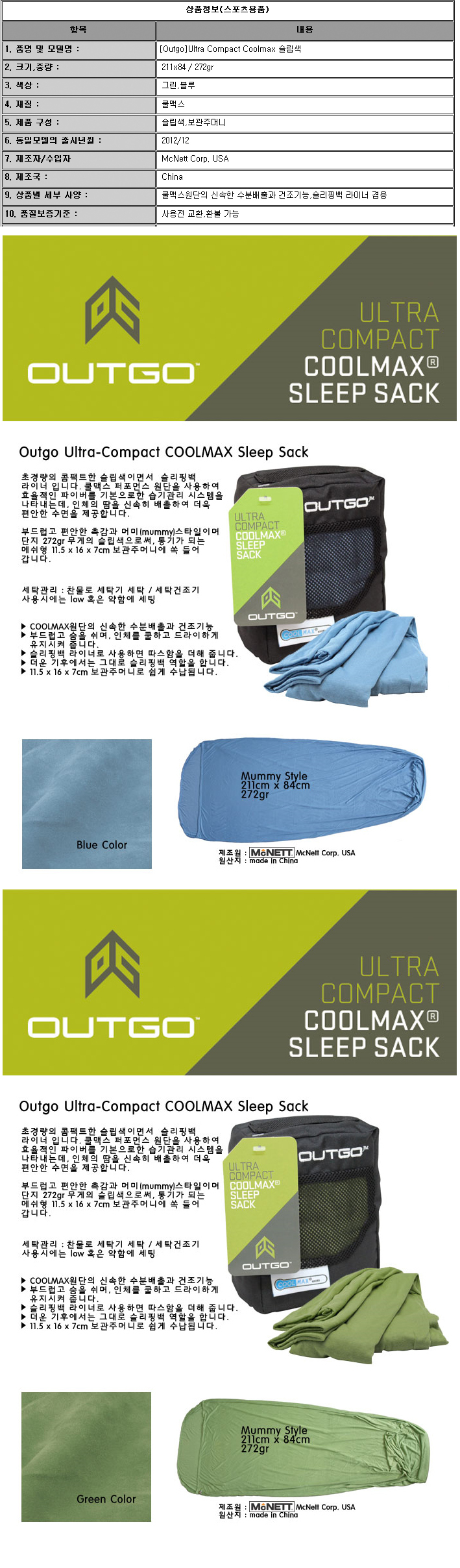 Compact Coolmax Slip Color 1p Sleeping Bag