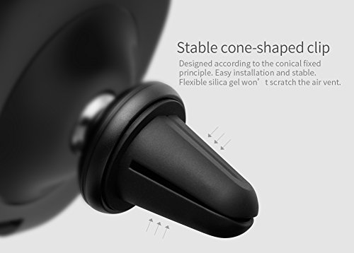 Focus on Details: Flexible silicone clip for stable installation no matter the thickness of air vent; built-in 360°rotating stainless steel ball for angle adjustment; blue indicator lights on the two sides to show the charging status.