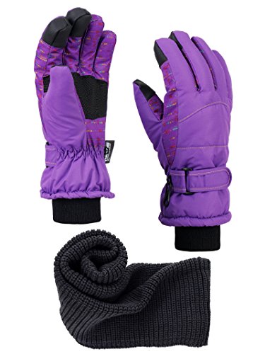 -. Feature : TECH: Advanced thumb and fingertips feature touchscreen capabilities that allow control of your smartphone or tablet without removing your gloves / PROTECTION: Waterproof, Breathable surface sheds water and snow; DWR Finish (Durable Water Repellant) beads water and keeps exterior dry. Designed specifically for skiing, snowboarding, sledding, and other winter sports / WARMTH: Constructed with 3M's super-efficient Thinsulate insulation ensuring breathability and maximum heat retention while remaining thin and light for optimal mobility and dexterity. Long filament fleece lining provides additional warmth and wicking under the most challenging conditions / FEATURE: Texturized palm and fingers guarantee a secure full-hand grip. Adjustable Velcro strap and longer gauntlet cuff length provide snug, custom fit while blocking out the snow / VALUE: This FURST Set comes with a matching high quality infinity scarf that can be worn double looped or as a shawl. Made with Acrylic wool that is soft to the touch, it locks in the warmth while wicking away moisture