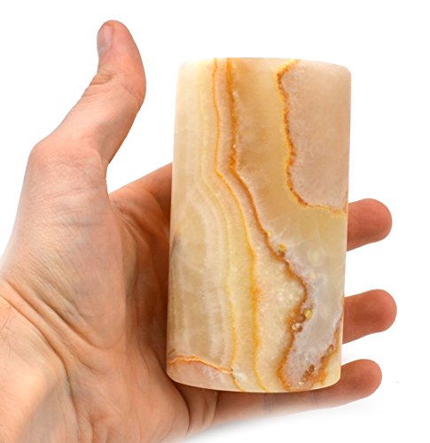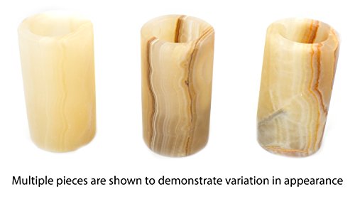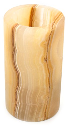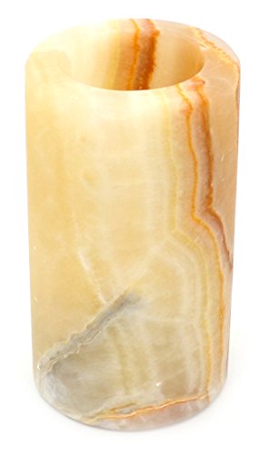 Soothing Amber Stone Candle Holder for Tea Candles, Real Hand Carved Onyx - Cylindrical Shaped, 4" tall - The Artisan Mined Series by hBAR