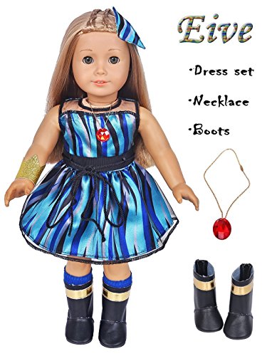 -. Feature : Evie Inspired Costume Doll Clothes For 18 inch Doll Clothes Fits American Girl, Our Generation, Journey Girls etc / Package Includes : 1*Dress+1*Sock+1*Arm Guard+1*Hairpin+1*Boots+1*Necklace / The Doll is Not Include Package. / Materials: High Quality, Easy to Put On. / Appeared Well Made and Quite Cute,Best Gift for Children, Especially Little Girls. Suitable for Parents to Do Some Parenting Practice and Helpful for Children to Develop a Good Habit of Self-reliance.