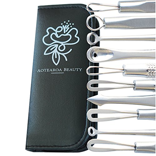Blackhead remover kit Comedone extractor tool set, Ideal treatment for zits pimples whitehead facial acne & nose blemish popper by Aotearoa Beauty