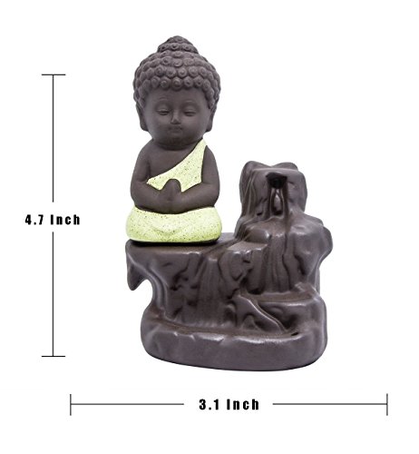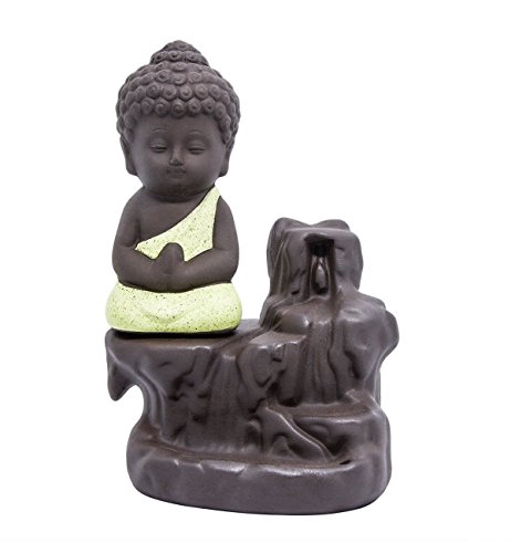 Incense Burner Hand made Backflow Tower Cones Sticks Little monk Holder Ceramic Porcelain Buddha By SIMON(Yellow)