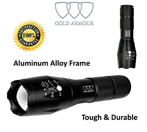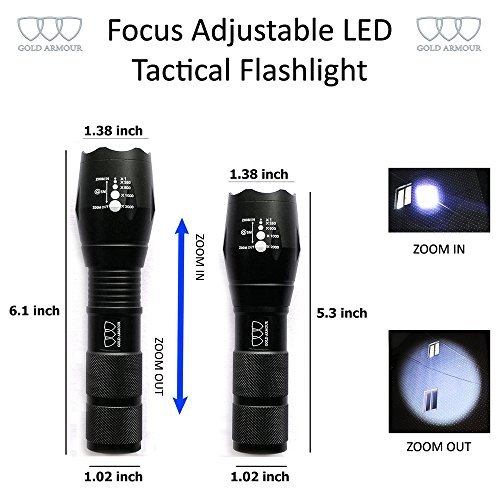 Tactical Flashlight, Brightest Nightlight Flashlight LED, Gold Armour 1000 Lumens Zoomable and Outdoor Handheld Flashlight,Adjustable Focus and 5 Light Modes for Camping Emergency (2 Pack)
