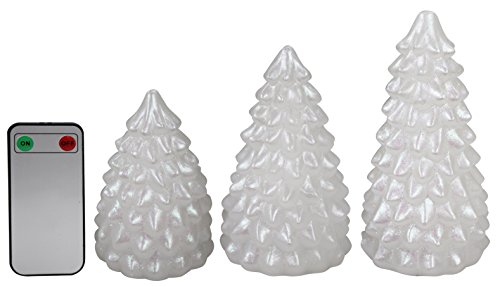 TSC Home Elegant White Christmas Tree Flameless 3 PC Candle Set With Remote Control, Real Wax LED Candle Set Including 4'', 5'' and 6.25'' EA, Christmas Decor, Gift Idea