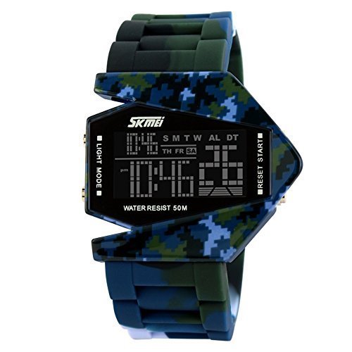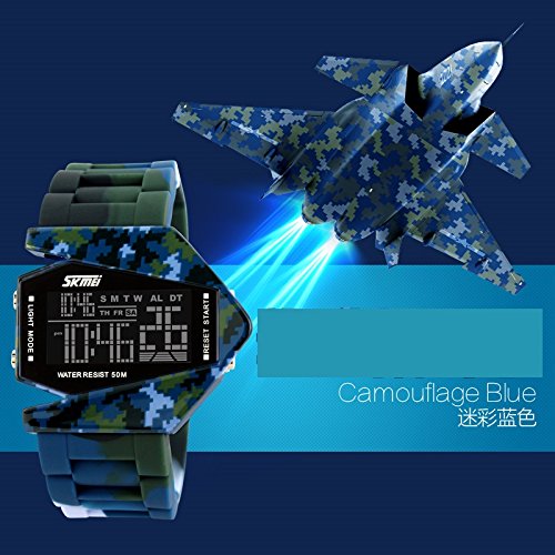 -. Title : Military Cool Colorful Light Digital Sport Water-proof Stealth fighter Style Wrist Watch -Blue