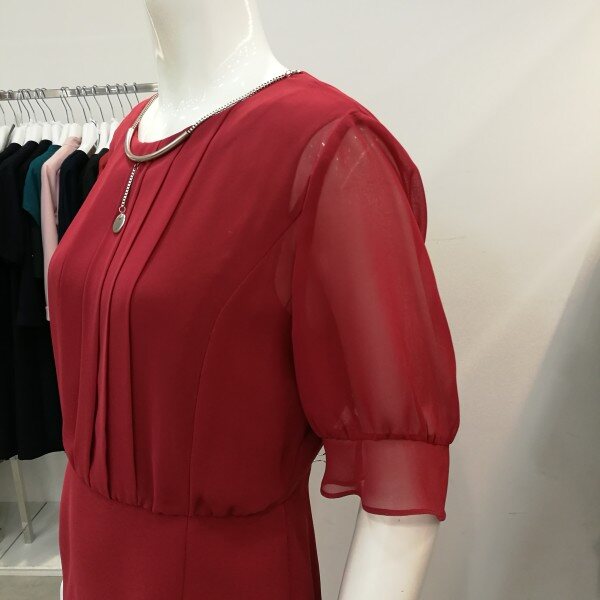 상의앞주름이라 가슴부분 커버가되며 소매시스루라 여성스럽고 슬림핏이라서 날씬해보이고 세련되었음.