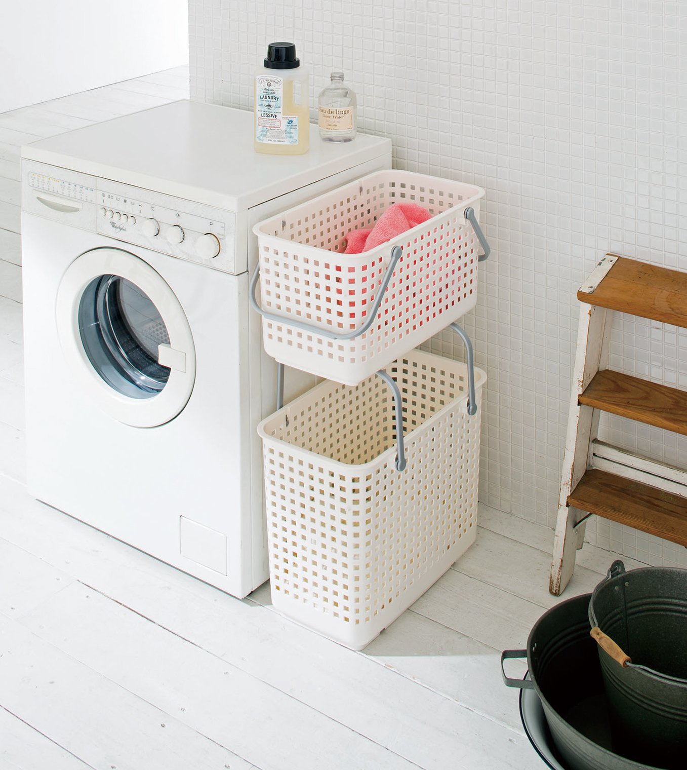 Like-it stacking basket Scandinavian style laundry L White