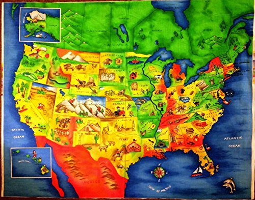 Colorful Map Of the United States Showing Each State Capital Cotton Fabric