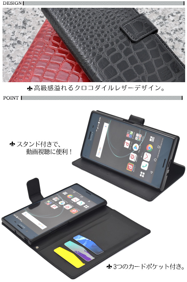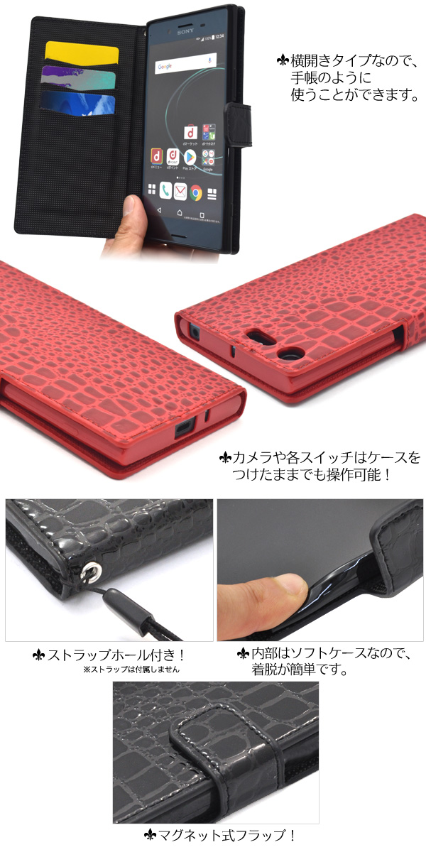 Xperia XZ Premium SO-04J用クロコダイルレザーデザイン手帳型ケース