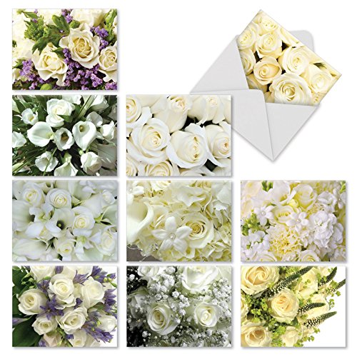 M10029TY Bridal Bouquets: 10 Assorted Thank You Note Cards Present Flowers of Innocence and Purity on the Wedding Day,w/White Envelopes.