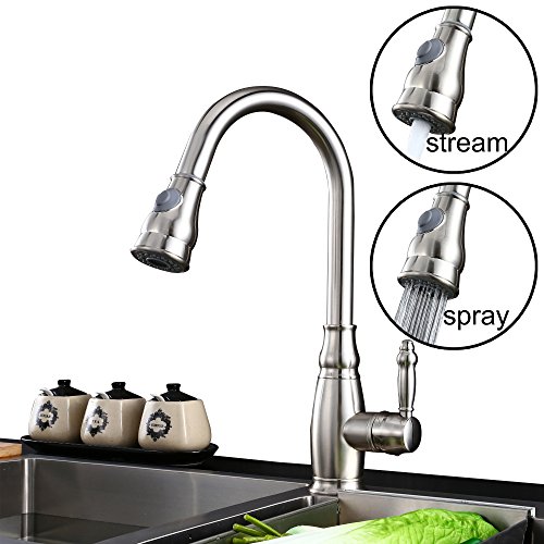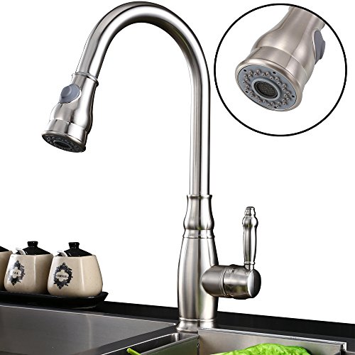 Cavoli Single Handle Pull Down ,Pull Out Sprayer Kitchen Faucet, Pull Out Kitchen Faucets Brushed Nickel