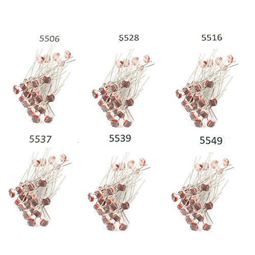 GeeBat 120pcs 150V 5mm Photoresistor Kit, Photo resistor 5506 5516 5528 5537 5539 5549, GL5506 GL5516 GL5528 GL5537 GM5539 GL5549 LDR Photo Resistors Light Sensitive Light-dependen Optoresistor