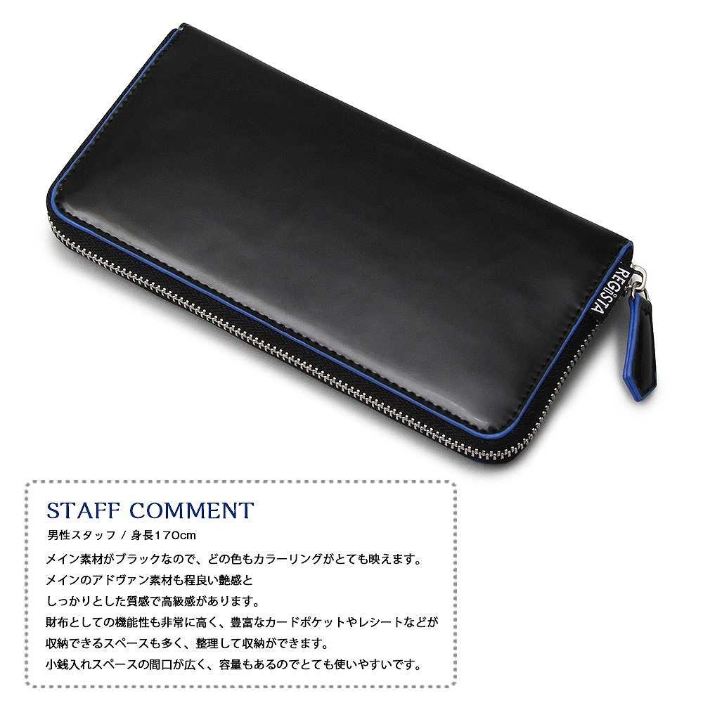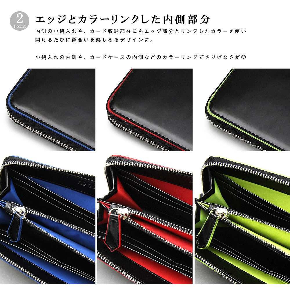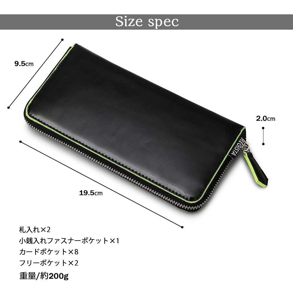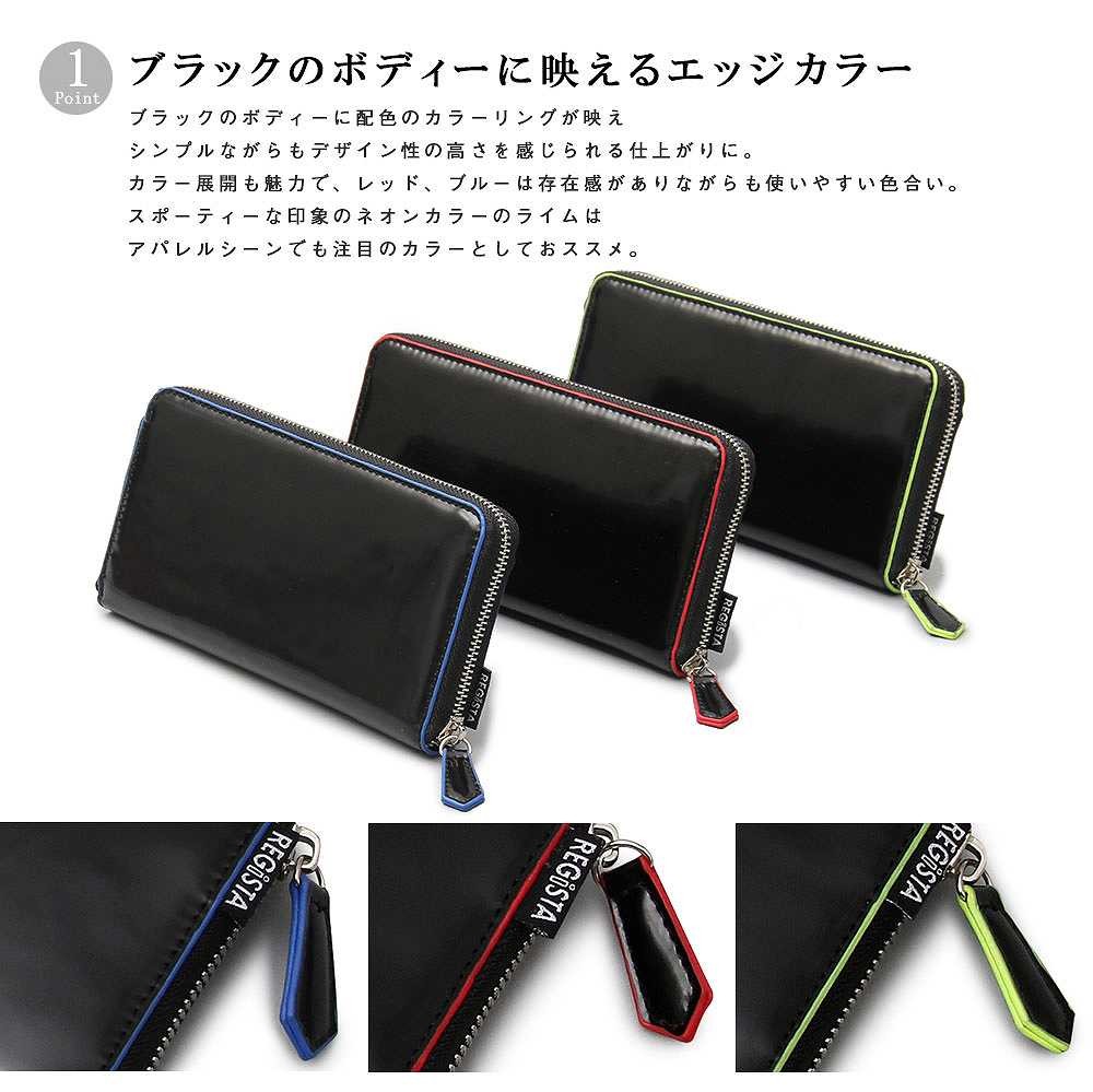 【商品説明】"ポップなカラーリングをポイントにしたロングウォレット"ブラックのアドヴァン素材のエッジ部分に、ポップなカラーを配色したロングウォレット。ブラックのボディーに配色のカラーリングが映え、シンプルながらもデザイン性の高さを感じられる仕上がりに。カラー展開も魅力で、レッド、ブルーは存在感がありながらも使いやすい色合い。スポーティーな印象のネオンカラーのライムは、アパレルシーンでも注目のカラーとしておススメ。内側の小銭入れや、カード収納部分にもエッジ部分とリンクしたカラーを使い、開けるたびに色合いを楽しめるデザインに。豊富なカード入れや、間仕切りが多い仕様で収納力も充実。カードや紙幣、領収書などを整理して入れることができる。独立したファスナー付の小銭入れは間口が広く小銭の出し入れに便利。シンプルながらポップなカラーリングと、使いやすさを併せ持ったメンズ、レディースともにおススメの逸品。 【サイズ】縦9.5cm×横19.5cm×マチ2.0cm【スペック】閉じ口 / ファスナー 重量 / 200g 容量 / 5リットル【素材】合成皮革【生産国】中国
