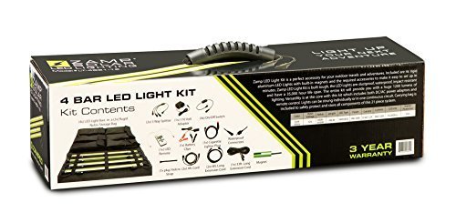 Studio : Zamp Solar Publisher : Zamp Solar Binding : Automotive Product Description Zamp LED light kit is a perfect accessory for your outdoor travels and adventures. Included are four rigid aluminum LED lights with built in magnets and the required accessories to make it easy to set up in minutes. Zamp LED light kit is built tough, the LED lights are: dustproof, waterproof, impact resistant and have a 35,000 hour life span. The entire kit will provide you with a huge 1920 lumens of lighting. Versatility is at the core with this kit which includes both DC/AC power adaptors and remote control. Lights can be strung individually or in one continuous circuit. Carrying bag is included to safely protect and store all components of this 21 piece system. 0