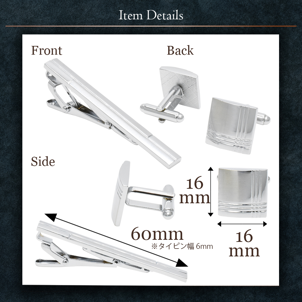 ■ 商品名 : カフス タイピン セット シルバー カフスボタン