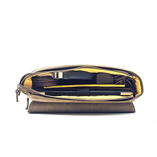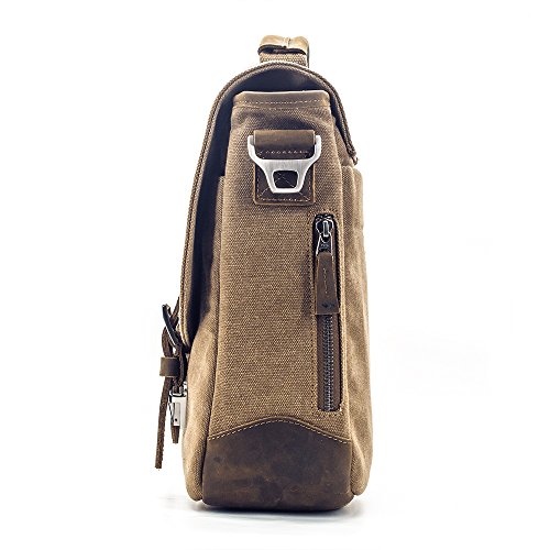 -. Feature : Leather, canvas - The bag is made of thick cow leather and heavy duty canvas. Durable leather is cut in 1.8-2mm with special tone surface, #16 tan canvas keep a classic looking. Eight-stitch for one inch bring more strength. / Metal accessories - Macloff messenger bags are closed with hidden press locks, and adjust the flap position by our special design "M" buckle. All the metal accessories are made from high density zinc and coated cool "silver sweep". / Size - Please check the size before you purchase (13.25''Lx11''Hx4''D). This bag designed in a nice shape that hold 13.3-inch laptop. Multi-pockets inside 2 pens/ 3 elastics/ 2 phone/ card holders. A side quick-open zip pocket for your key and cards. The bag holds its shape very well by inside high density foam, even with age. / Handle, strap - 1.25-inch leather handle (a comfortable size for hand) on the top attached bags by rivets. The max length of adjustable strap is 146cm, a strap padding will cover your shoulder for more protection if bags stay heavy. / Quality - Our zipper come from YKK with smooth sliding. "X" stitching and rivets makes bags stressed heavy. Each bag be package in a silk bag and will arrived to customer in perfect situation.
