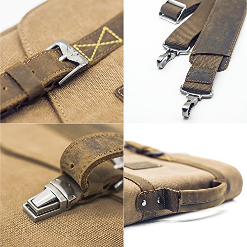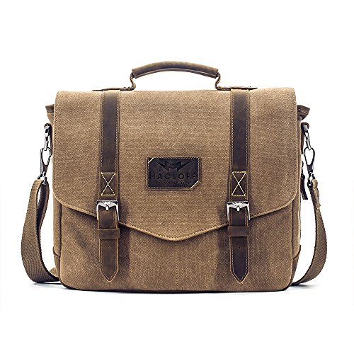 -. Title : Messenger Bag for Men Canvas and Cow Leather MACLOFF Briefcase Sling Bag Fits 13.3-inch Laptop With Vintage Design (Tan)