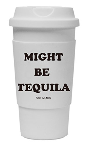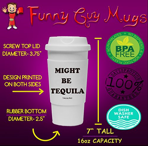 Funny Guy Mugs Might Be Tequila Travel Tumbler With Removable Insulated Silicone Sleeve, White, 16-Ounce