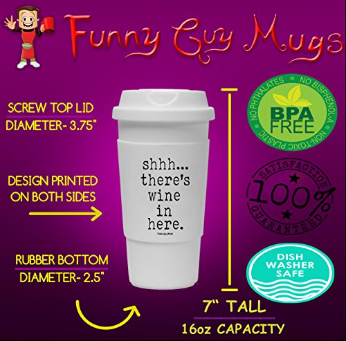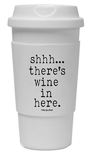 Funny Guy Mugs Shhh There's Wine In Here Travel Tumbler With Removable Insulated Silicone Sleeve, White, 16-Ounce