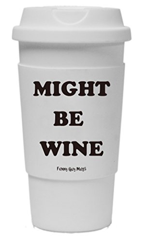 Funny Guy Mugs Might Be Wine Travel Tumbler With Removable Insulated Silicone Sleeve, White, 16-Ounce
