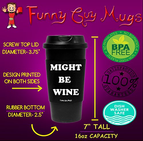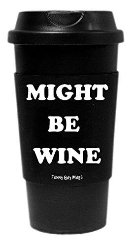 Funny Guy Mugs Might Be Wine Travel Tumbler With Removable Insulated Silicone Sleeve, Black, 16-Ounce