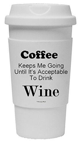 Funny Guy Mugs Coffee Keeps Me Going Until It's Acceptable To Drink Wine Travel Tumbler With Removable Insulated Silicone Sleeve, White, 16-Ounce