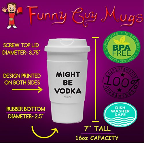 Funny Guy Mugs Might Be Vodka Travel Tumbler With Removable Insulated Silicone Sleeve, White, 16-Ounce