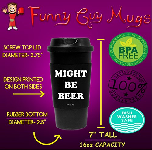Funny Guy Mugs Might Be Beer Travel Tumbler With Removable Insulated Silicone Sleeve, Black, 16-Ounce