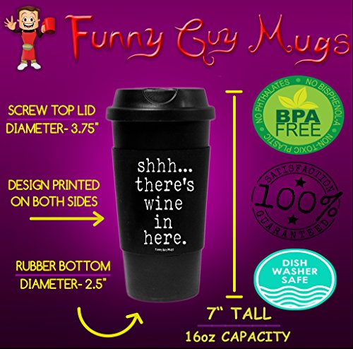 Funny Guy Mugs Shhh There's Wine In Here Travel Travel Tumbler With Removable Insulated Silicone Sleeve, Black, 16-Ounce