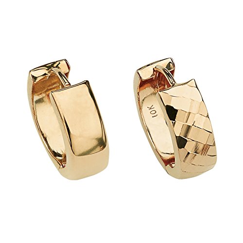 Reversible huggie hoop earrings are twice the fun. One side is a shiny, polished 10k yellow gold. The other is a diamond-cut 10k yellow gold. Two looks in one! - 54754