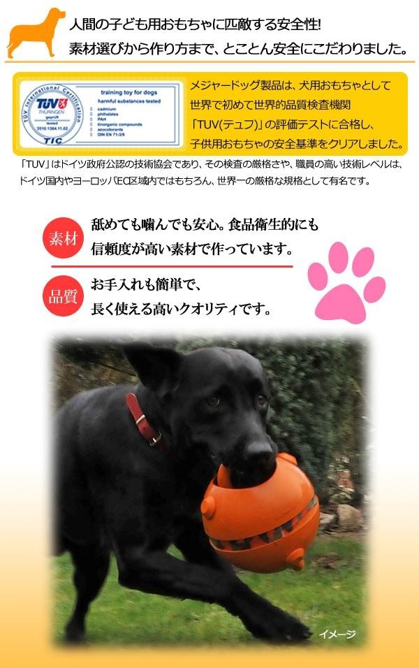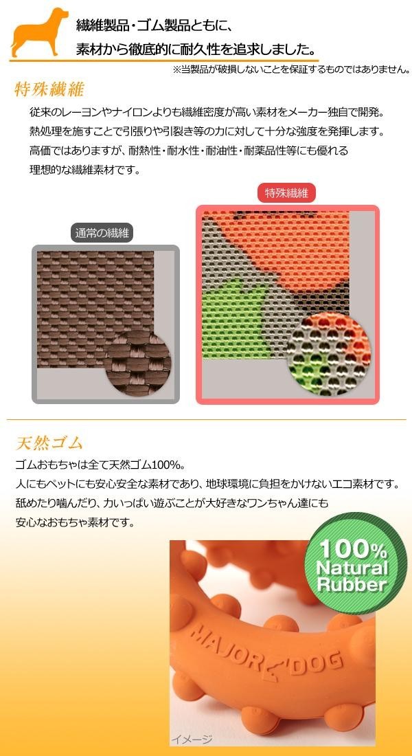 | 素材は耐久性が高く、ワンちゃんが噛んでも安心・安全なものを使用しています。ワンちゃんが長く楽しめるよう様々な工夫がなされているおもちゃです♪そのクオリティの高さは、ドッグトレーナーも愛用している程です! |