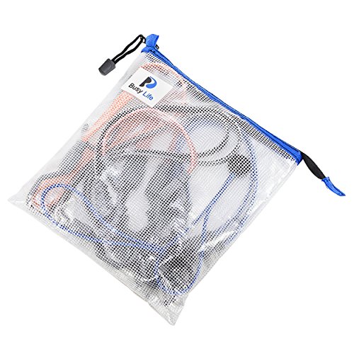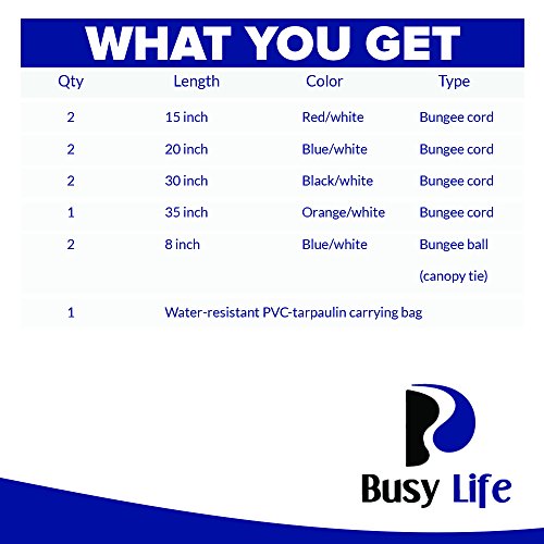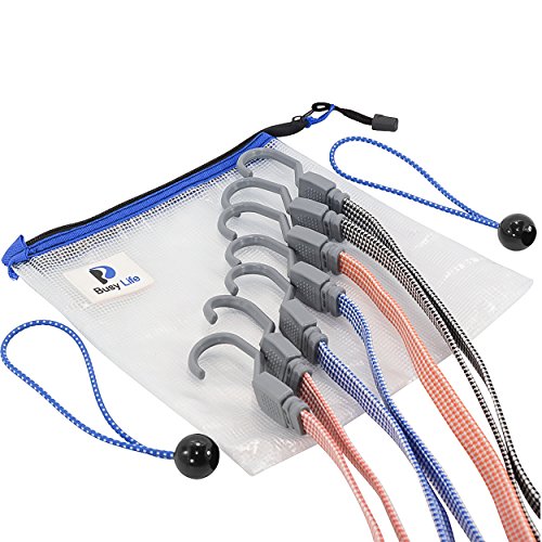Busy Life Premium Flat Bungee Cord Set. Multi-Strand Rubber Cord in Each Flat Bungee. Bonus Water Resistant Storage Bag