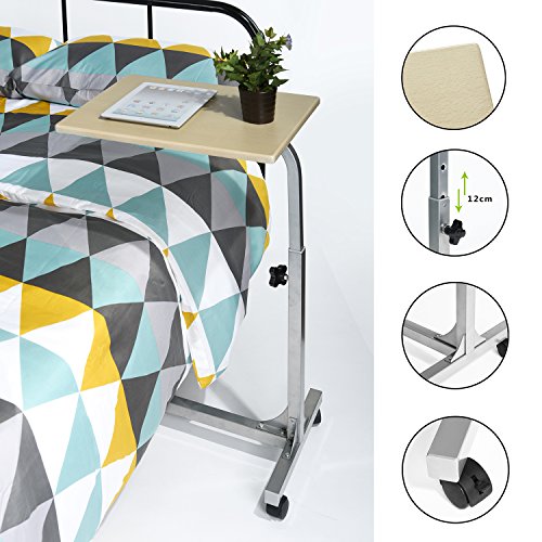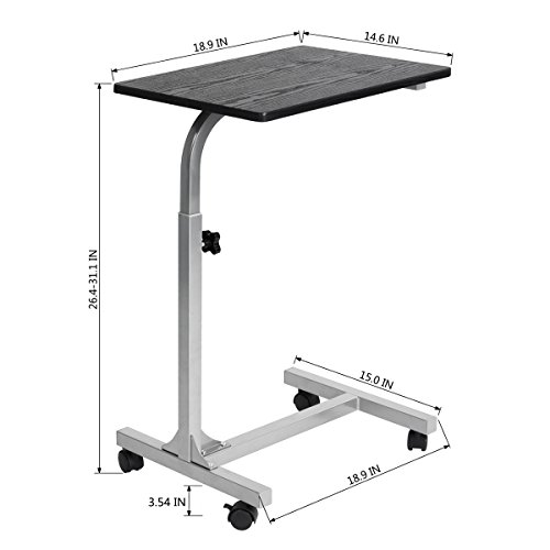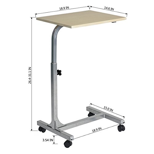 Coavas Medical Adjustable Overbed Table Tray with Wheels Multi-purpose Laptop Computer Cart Desk Bed Sofa Reading Eating Stand for Both Hospital and Home