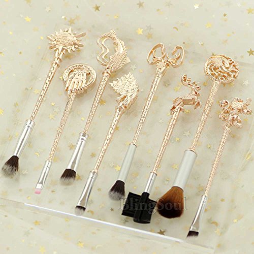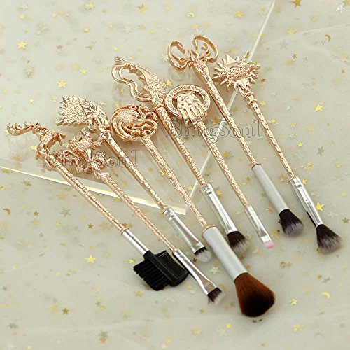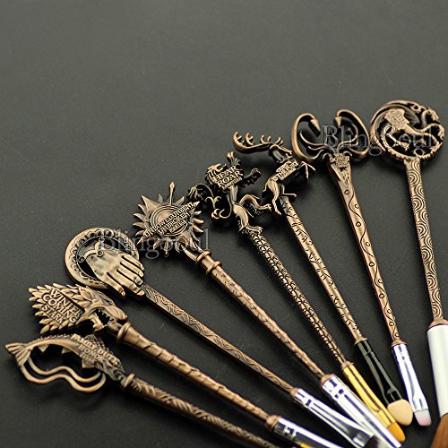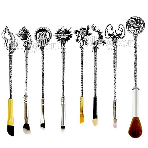 -. Feature : ✔ Complete set of makeup brushes which includes brushes for foundation, eye-makeup, blush, eyeliner and face powder. ✔ Grab this Games of Throne makeup brush set and have an eye-catching look in all your gatherings. / ✔ Set of 8 high-quality material makeup brushes designed for the expert use which will give you a flawless face and eye makeup application. / ✔ Handle material is made up of top quality metallic alloy with high finishing, portable and suitable for daily use. Best Holiday gift for your girls, wife, mother / ✔ This stylish and convenient set of makeup brushes for her is very easy and comfortable to use and handle. / ✔ Every single brush was assembled by hand and packed individually. ✔ All the brushes are extremely soft and comfy to hold makeup on every skin from normal to sensitive with no irritation.