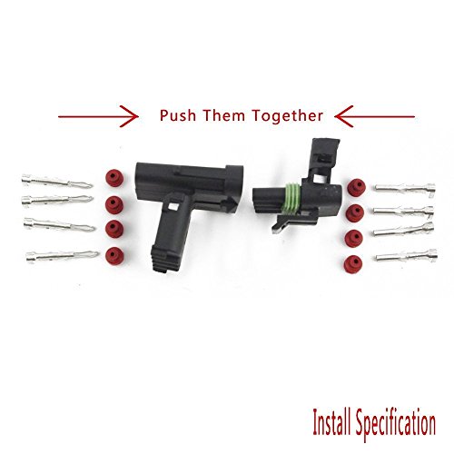 MUYI 10 Kit 4 Pin Way Waterproof Electrical Connector Green Seal Red Insert 1.5mm Series Terminals Heat Shrink Quick Locking Wire Harness Sockets