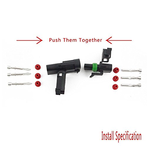 MUYI 10 Kit 3 Pin Way Waterproof Electrical Connector Green Seal Red Insert 1.5mm Series Terminals Heat Shrink Quick Locking Wire Harness Sockets