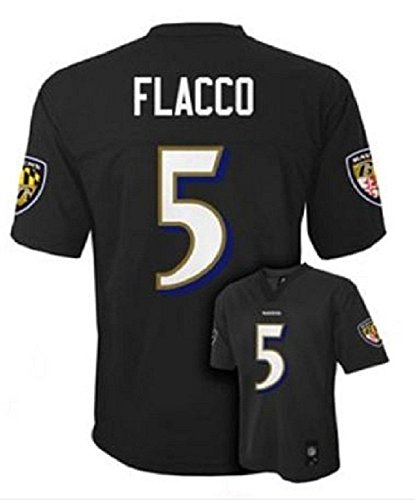 JOE FLACCO BALTIMORE RAVENS #5 NFL YOUTH BLACK ALTERNATE JERSEY SIZE SMALL 8