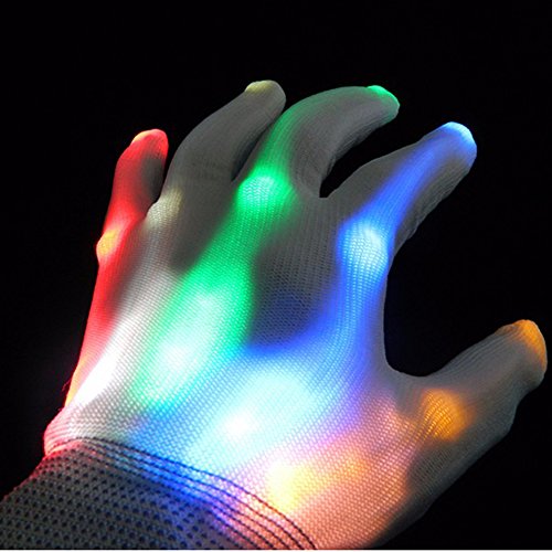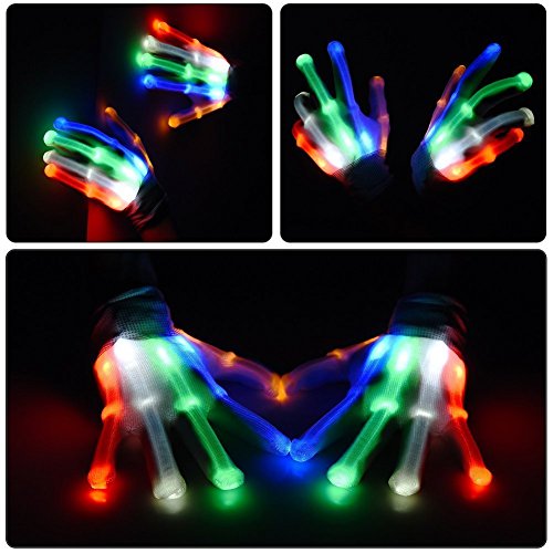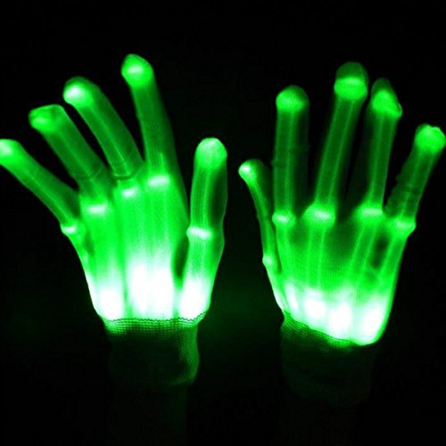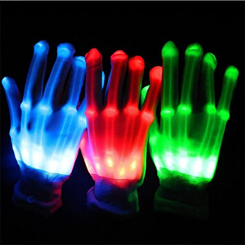 Product Description CHARACTERISTIC:These Gloves are so cool,look incredible in the dark.You would be impressed by the glowing illusion that these gloves create. These start a new page of Halloween Costume Accessories and skeleton costume! The Lights on the wrist project light a clear, reflective material and really looks like bones, knuckles and all. Light emitted makes your hands look like a skeleton light like in an x-ray.You can control the light up gloves by a button on the wrist.