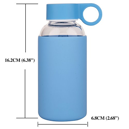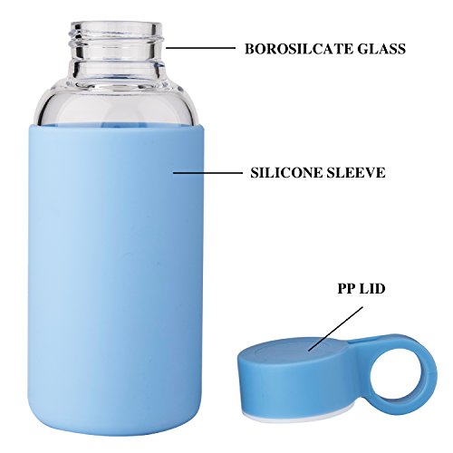 Justfwater Borosilicate Glass Water Bottle With Silicone Sleeve 12 oz BPA Free