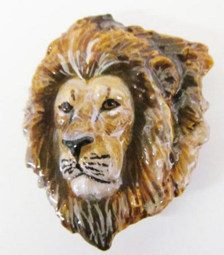 Show your love for the beautiful Lion Head with this Hand Painted Pewter pin, it makes a wonderful gift for any of your friends or that special someone. Hand Made in the USA with Lead-Free Pewter by Creative Pewter Designs. This beautiful lapel pin was hand sculpted in clay and then made into a mold to be cast in Lead-Free Fine English Pewter. Each pin is carefully Painted by Hand with fine detailing to create the realism and beauty of the real life subject. Three coats of clear Acrylic are applied to ensure the paint will not chip and provides UV Protection so that it will never fade. The Painted pin truly becomes a wearable work of art. Proudly Made by American Artists. 100% Satisfaction Guarantee. Thank you Height (IN): 1.96 Width (IN): 1.58 Diameter (IN): N/A Thickness(IN): 0.31 Weight (OZ): 1.1Feature