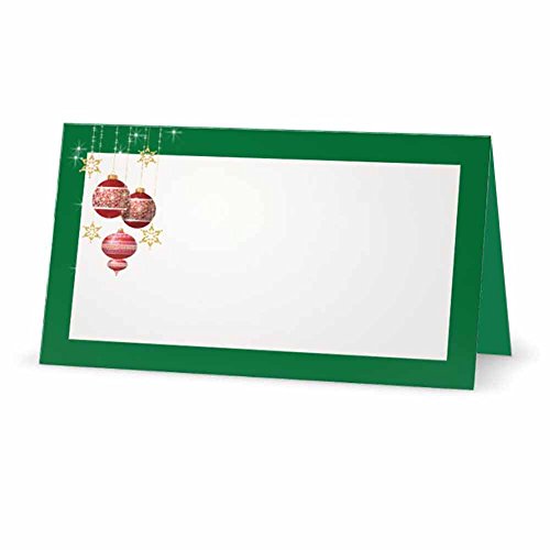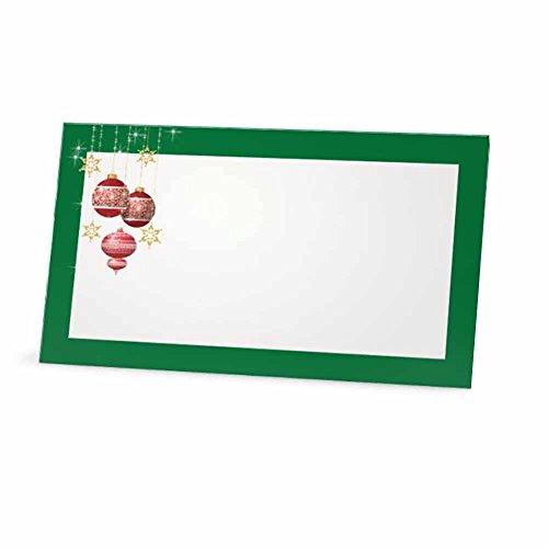 Christmas Ball Green Place Cards - FLAT or TENT Style - 10 or 50 Pack - White Blank Front with Border - Placement Table Name Seating Stationery Party Supplies Occasion Dinner (50, FLAT STYLE)