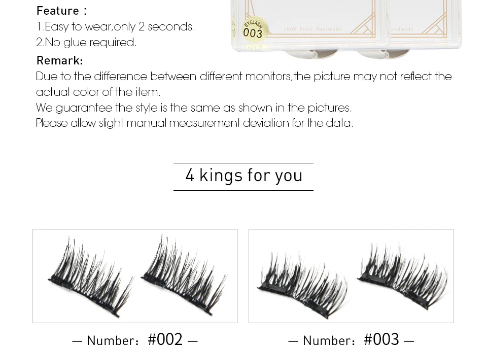 Size:1 pair= 4 pcs 3D Magnetic False Eyelashes
