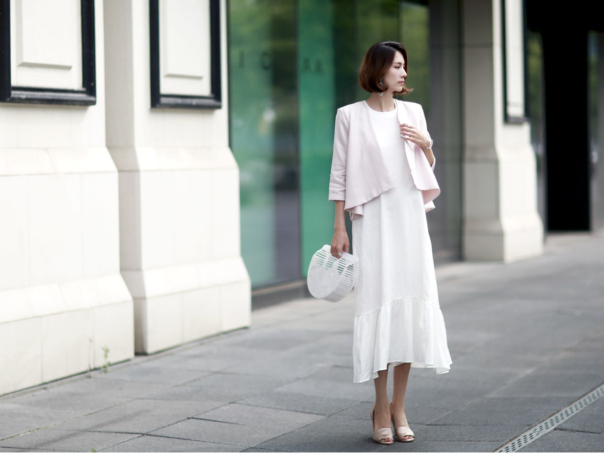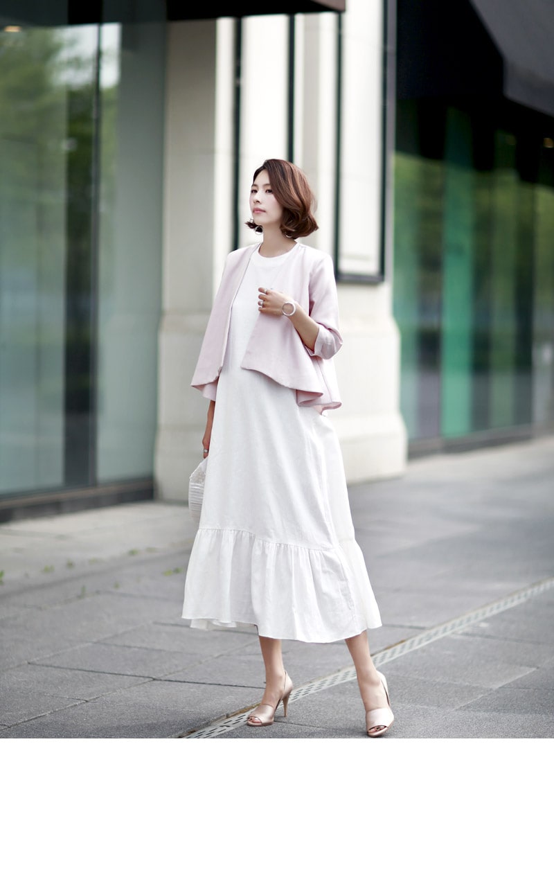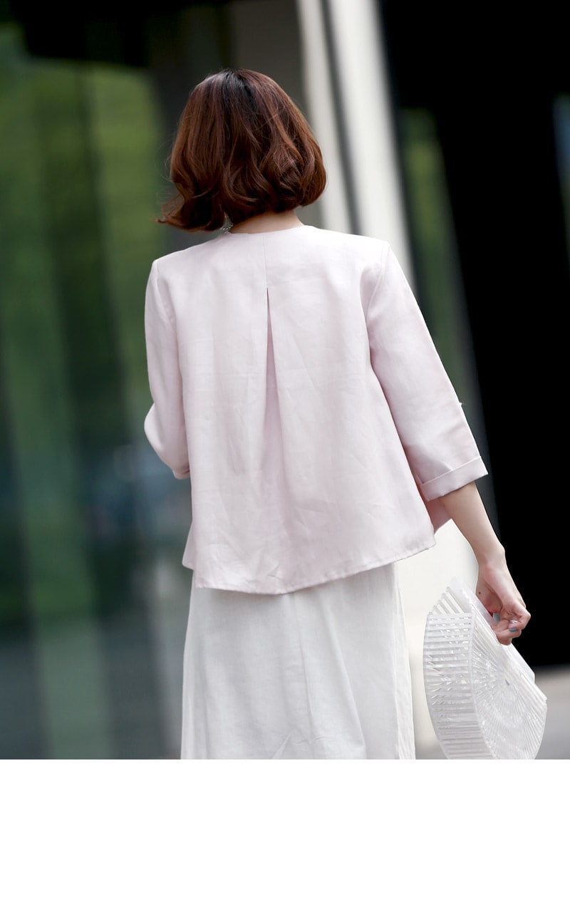 J-4024 트라이앵글 훌 린넨 자켓 Light Pink