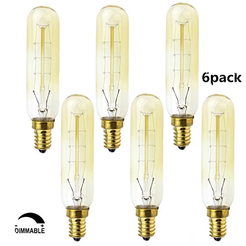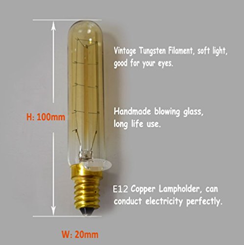 T20/T28 Candelabra Vintage Bulbs,Incandescent Filament Light Bulb,T20 E12 Candelabra Base(40W),Hand-Wound Tungsten Thread Filament ,Dimmable, 6Pack