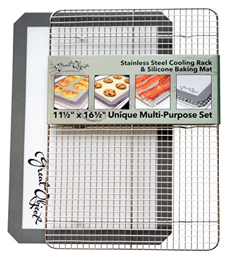 FIRST CLASS COOLING & BAKING SET - Unique Combination of Cooling Rack and Baking Mat to Help You Bake and Cool in a Simpler, Cleaner and Healthier Way. With Best Features That Meet Our Customer Needs It Is An Indispensable Multipurpose Kitchen Tool.