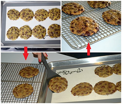 A “MUST HAVE” BAKEWARE SET - Essential to Any Modern Kitchen and Awesome Gifts for Mom, Friends, Family, Birthdays, Cooking Lovers, Personal Chef, Housewarming or Bridal Shower. With Multiple Uses, Helps Prepare Pastries, Cookies, Cupcakes, Bacon, Bread, Pizza, Crispy Chicken Wings and Much More. This Set Can Be Used Separately or Together by Cooking on the Baking Mat and When Already Baked, Just Slide The Food Right Off The Mat On The Cooling Rack to Cool and It Will Be Ready to Eat !