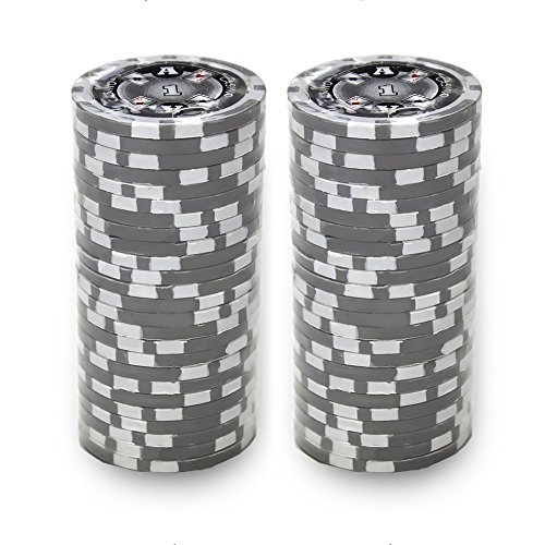 Brybelly Ace Casino Poker Chip Heavyweight 14-gram Clay Composite - Pack of 50 ($1 grey)