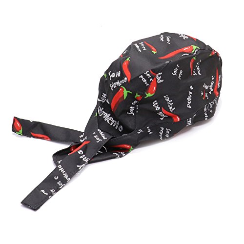 (HUELE)/Accessories/Hats/DIRECT FROM USA/HUELE 2 pcs Black Chefs Hat Chef Skull Cap Kitchen Catering Turban (Pepper Pattern)