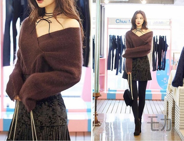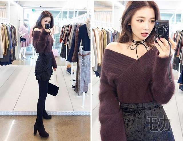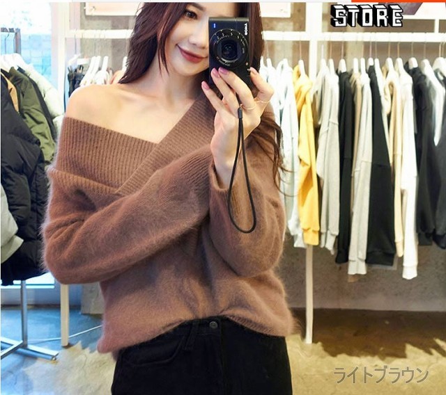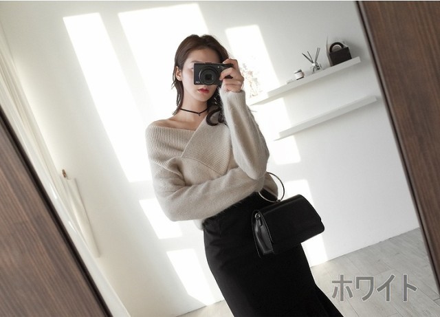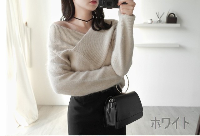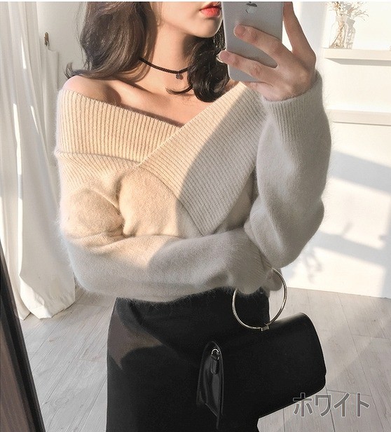 クロスしたオフショルダーラインがセクシーなニットトップスです☆
